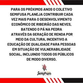 Poucos coletivos sobreviveram ao longo do tempo, completar 15 anos, é resistir às agruras do tempo, da falta de incentivo, da falta de apoio político, em uma cidade negligência como Ribeirão das Neves, entre outros. Para os próximos anos o Coletivo Semifusa planeja contribuir cada vez mais para o desenvolvimento econômico de Ribeirão das Neves, através da geração de renda por meio da cultura, incentivando a educação de qualidade para pessoas em situação de vulnerabilidade social, incluindo todos os públicos de modo diverso.